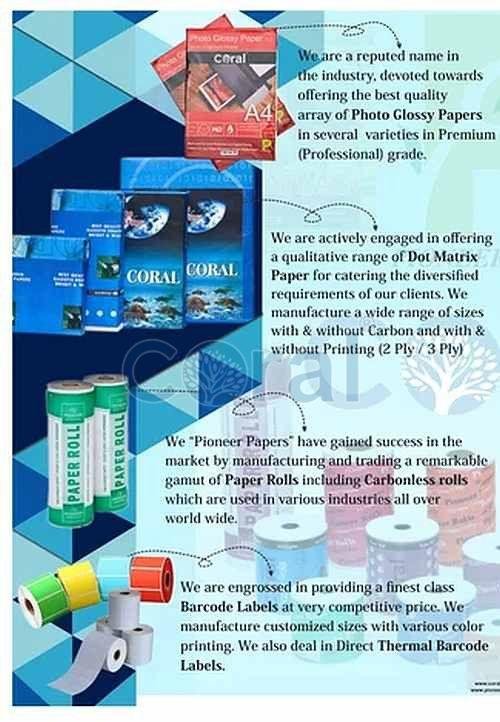 Explore our wide selection of high-quality paper and label products, each designed to address your unique organizational, communication, and printing needs. Our product line includes computer paper, barcode labels, ST labels, fluorescent paper, glossy papers, thermal rolls, fax rolls, POS rolls, paper rolls, wax ribbons, and Dot matrix paper.